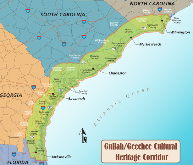 Gullah is a name for the people, a language, and culture of the coastal regions of South Carolina, Georgia, and its surrounding Sea Islands. In Georgia, the people and culture are known as “Geechee”. The Gullah language continued to flourish due to the isolation of many plantation communities and secluded Sea Islands. Because the sea islands were only accessible by boat until the 1950s, the Gullah language continued to perpetuate.